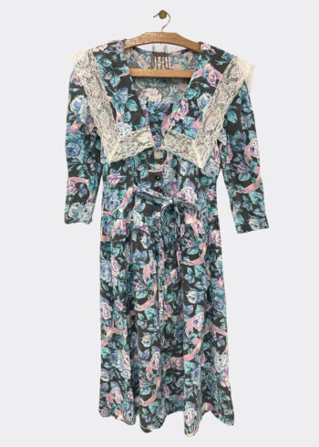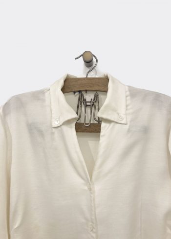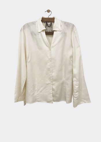 Vintage cream coloured long sleeve blouse. Sweet embroidery finishes the round collar and floral embroidered detail on the button down placket. Fabric feels like viscose twill.