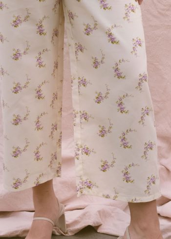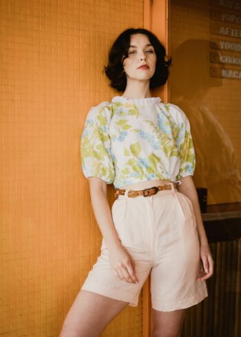 1940’s rayon bed jacket delicately decorated in a dainty tea floral print a beige lace. It has a round Peter Pan collar, trimmed with lace. A hook & eye closure at the neck opening with an open front. To wear as a blouse why not consider adding buttons down the front?