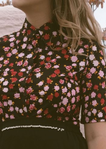 Black Floral 70s Penny Collar Shirt