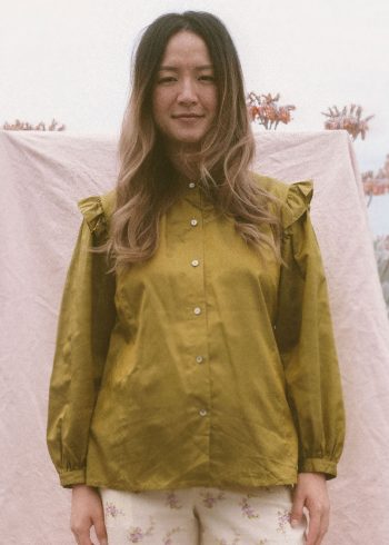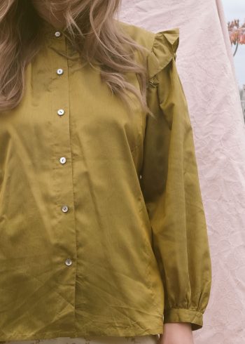 Olive Ruffled Vintage Blouse