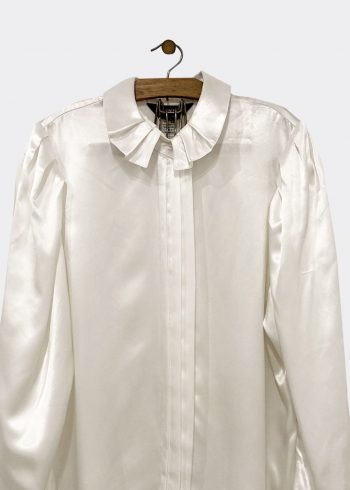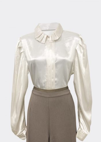White Satin Pleated Collar Blouse