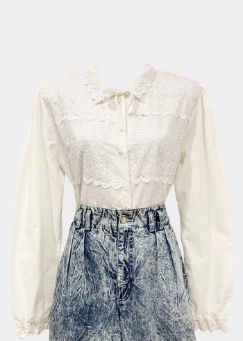 White Embroidered Collar Blouse