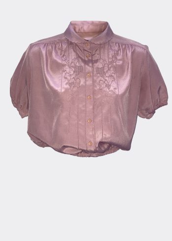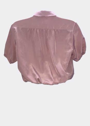 Pink 1950s Nylon Rose Puff Sleeve Gown