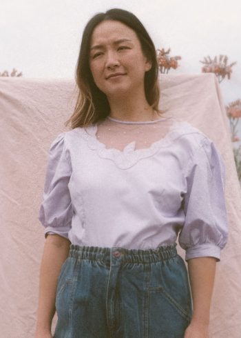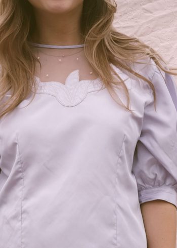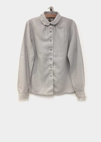 Gingham Pale Blue Vintage Blouse Small Round Collar Ruffle